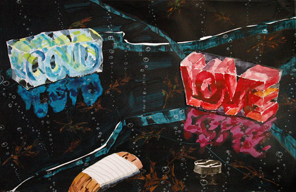 Cold Love © 2009, 26" x 40", acrylic, colored pencil, on paper