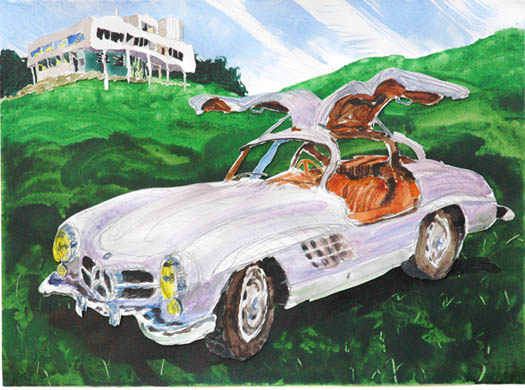 Gullwing, Villa Savoye © 2007, 22" x 30", acrylic, pencil, on paper